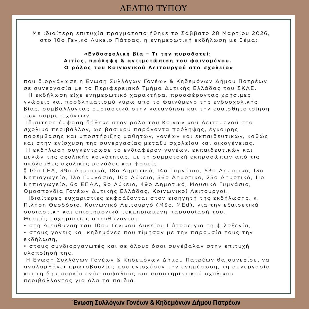 Ένωση Συλλόγων Γονέων & Κηδεμόνων Δήμου Πατρών