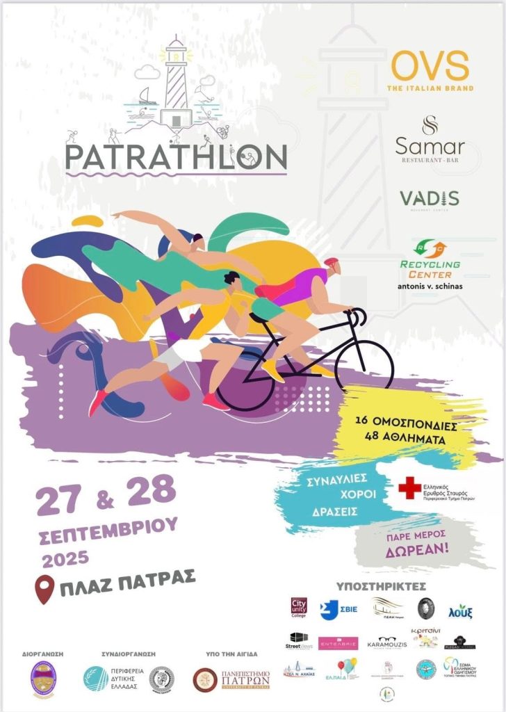 Patrathlon 2025 📅 Σάββατο & Κυριακή, 27–28 Σεπτεμβρίου 2025 10:00-13:00 & 17:00- 20:00 📍 Πλαζ Πατρών ΕΙΣΟΔΟΣ ΑΠΟ ΤΗ ΚΕΝΤΡΙΚΗ ΠΥΛΗ ΤΗΣ ΠΛΑΖ (ΔΗΛΩΣΗ ΣΥΜΜΕΤΟΧΗΣ ΣΤΗ ΓΡΑΜΑΜΤΕΙΑ ΠΟΥ ΘΑ ΒΡΙΣΚΕΤΑΙ ΠΡΙΝ ΤΗΝ ΕΙΣΟΔΟ ) Μικροί και μεγάλοι θα έχουν τη δυνατότητα να γνωρίσουν και να δοκιμάσουν πάνω από 30 αθλήματα, να παρακολουθήσουν επιδείξεις, να συμμετέχουν […]